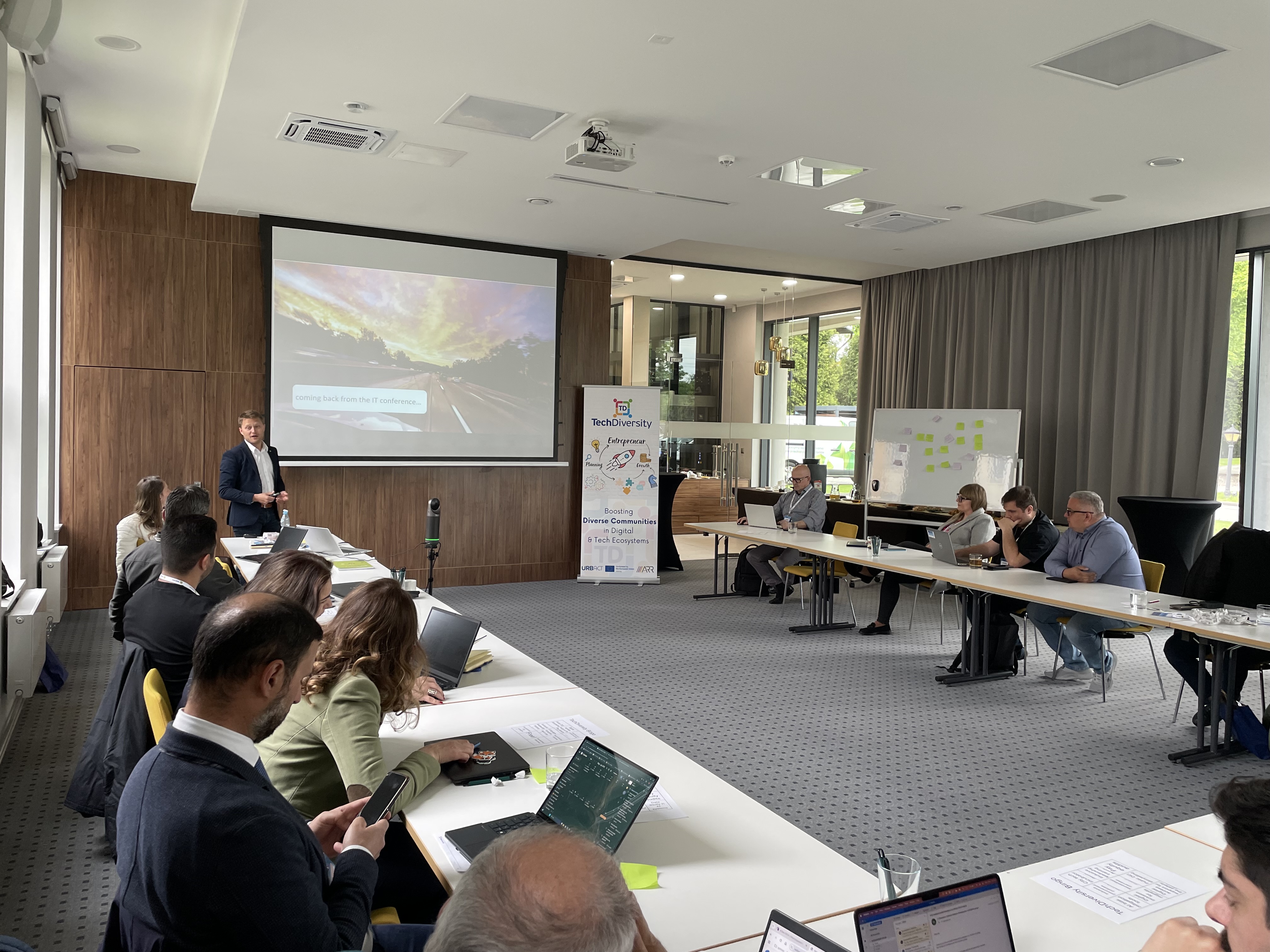 W drugim dniu spotkania, odbyła się część warsztatowa, podczas której przedstawialiśmy i wzajemnie ocenialiśmy nasze Zintegrowane Plany Działań – główne produkty tego projektu, w których każdy z partnerów określa swoją strategię i działania dotyczące wspierania potencjalnie niedoreprezentowanych grup w branży technologicznej ✍️🧠