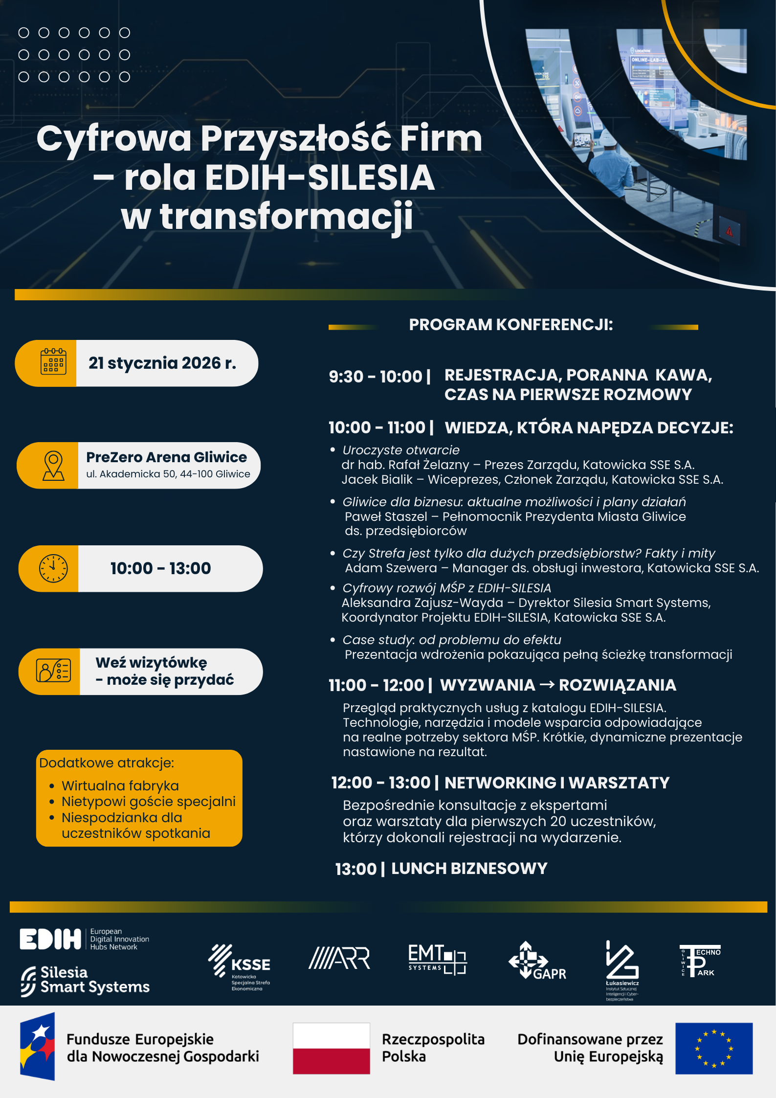 Nowoczesne technologie stają się kluczowym elementem strategii każdej firmy. Konferencja organizowana w ramach projektu EDIH-SILESIA, którego jesteśmy partnerem, to dobra okazja, aby przyjrzeć się konkretnym rozwiązaniom, które mogą usprawnić działanie biznesu w nadchodzącym roku.