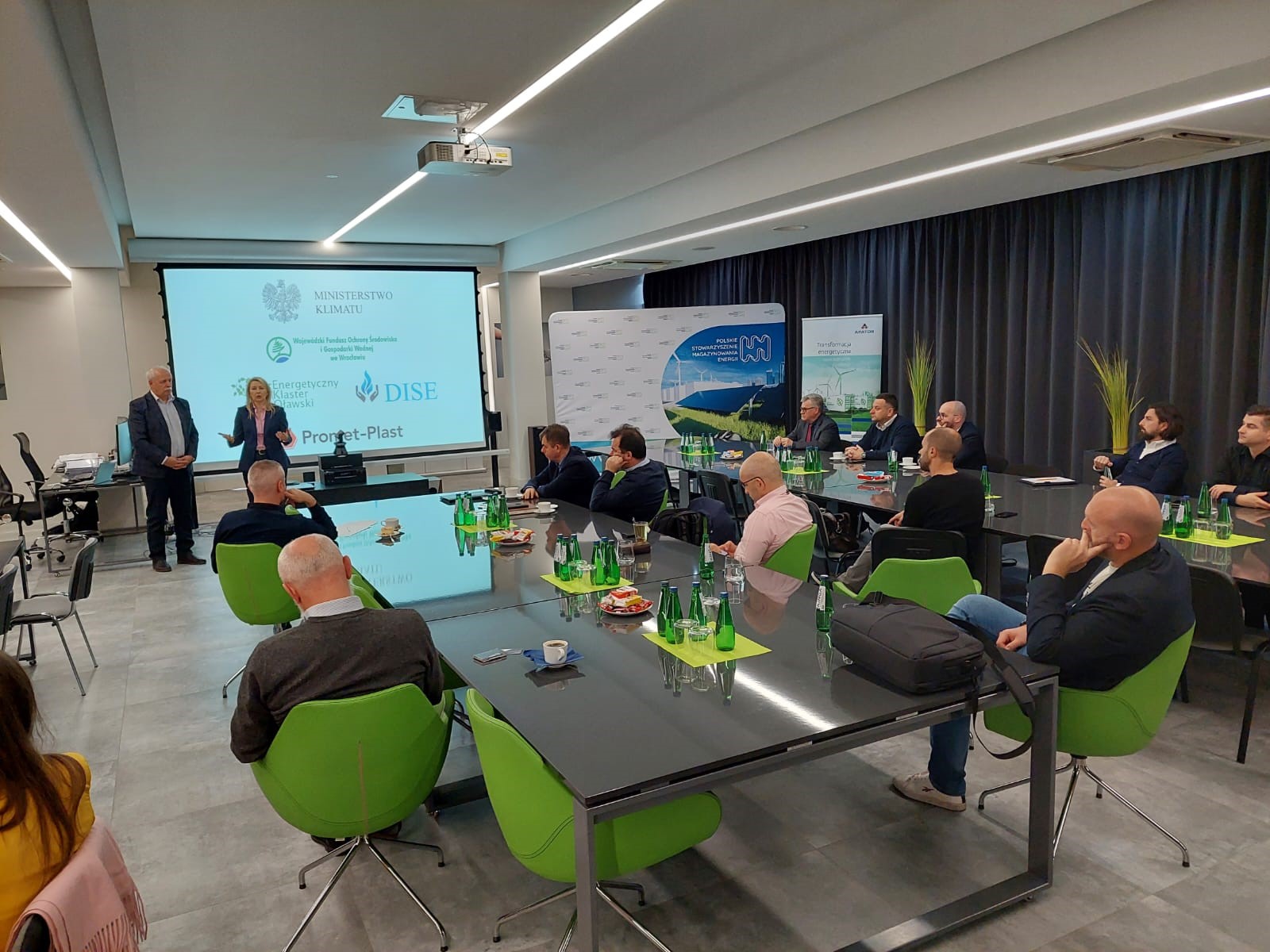 Pierwszą część spotkania poprowadził Andrzej Jeżewski, lider EKO, który opowiedział o technologiach stosowanych w Gaju Oławskim, o historii klastra oraz o specyfice jego funkcjonowania. Druga część warsztatów poświęcona była magazynom energii, które są antidotum na wahania i braki w wytwarzaniu energii oraz elementem stabilizującym system elektroenergetyczny. Poprowadziła ją Barbara Adamska, Prezes Polskiego Stowarzyszenia Magazynowania Energii.