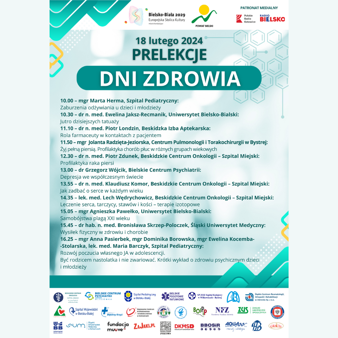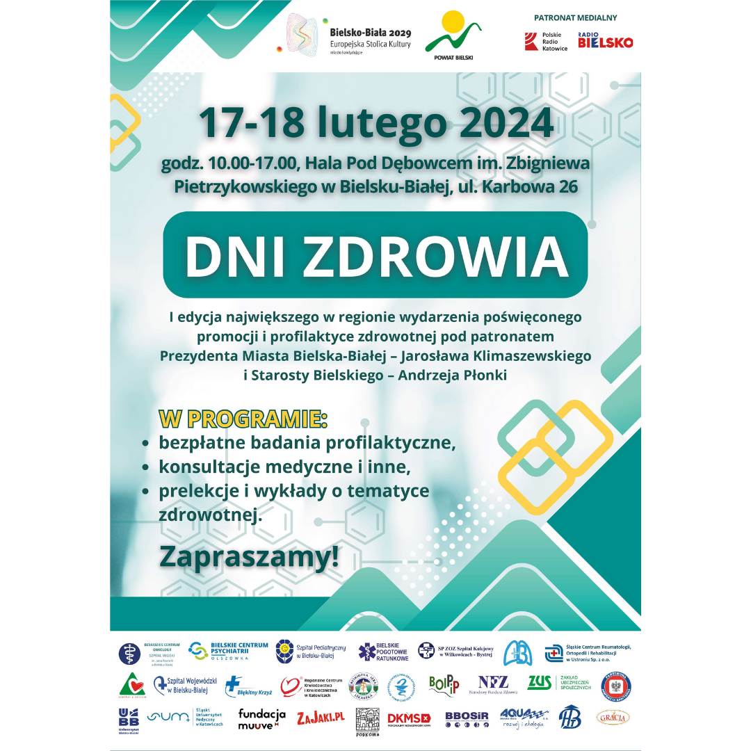 W dniach 17-18.02.2024 r. w godz. 10.00 -17.00 w Hali Pod Dębowcem odbędą się Dni Zdrowia. To wydarzenie poświęcone jest profilaktyce zdrowotnej i promocji zdrowego życia.